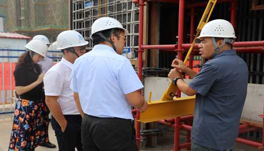 在马总的邀请下,袁正刚总裁一行对项目施工现场及样板区进行了参观。认真听取马总关于科建公司BIM技术在结构优化、样板展示、管线综合等方面的应用情况。并对施工现场广联达现场劳务管理系统使用情况进行了调研。